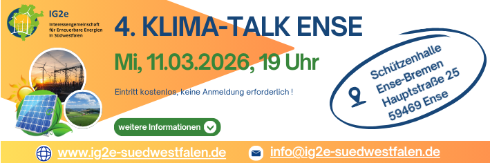 Die Interessengemeinschaft für Erneuerbare Energien in Südwestfalen (IG2e) setzt sich für den Klimaschutz vor der Haustür ein. Unterschiedliche Säulen bilden die Basis der am 1.9.2020 ins Leben gerufenen IG2e.